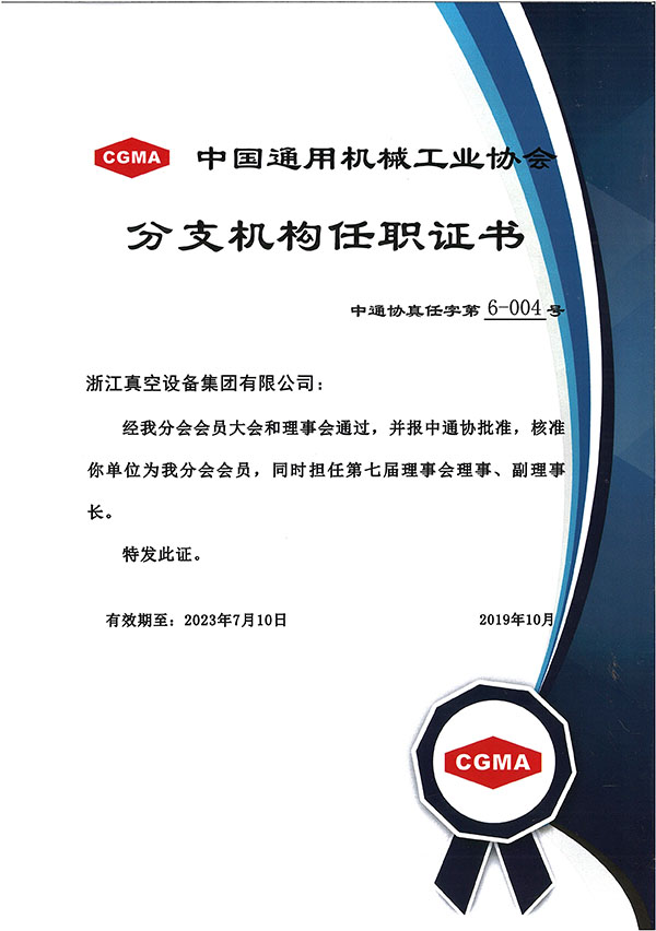 • 中國通用機(jī)械工業(yè)協(xié)會(huì)分支機(jī)構(gòu)任職證書